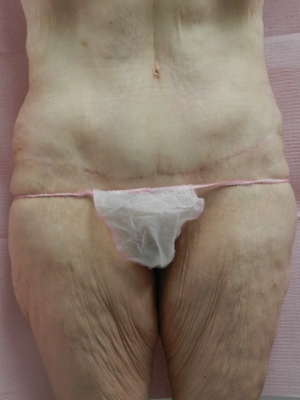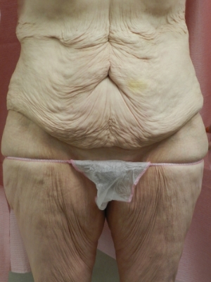 45 yo s/p Roux-en Y gastric bypass with 160 lb weight loss (320lb -160 lb). Gained weight to 230 lbs and then lost additional 85 lbs (230 – 145). Skin only abdominoplasty